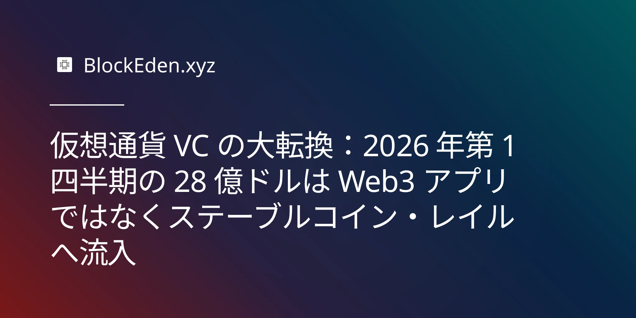 仮想通貨 VC の大転換:2026 年第 1 四半期の 28 億ドルは Web3 アプリではなくステーブルコイン・レイルへ流入