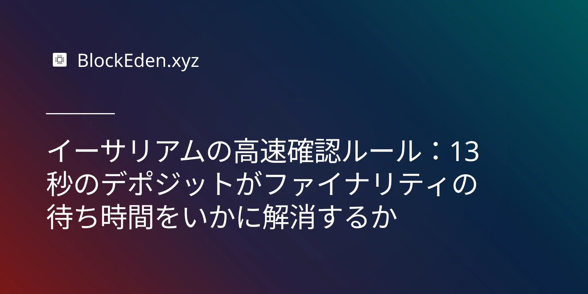 イーサリアムの高速確認ルール:13秒のデポジットがファイナリティの待ち時間をいかに解消するか