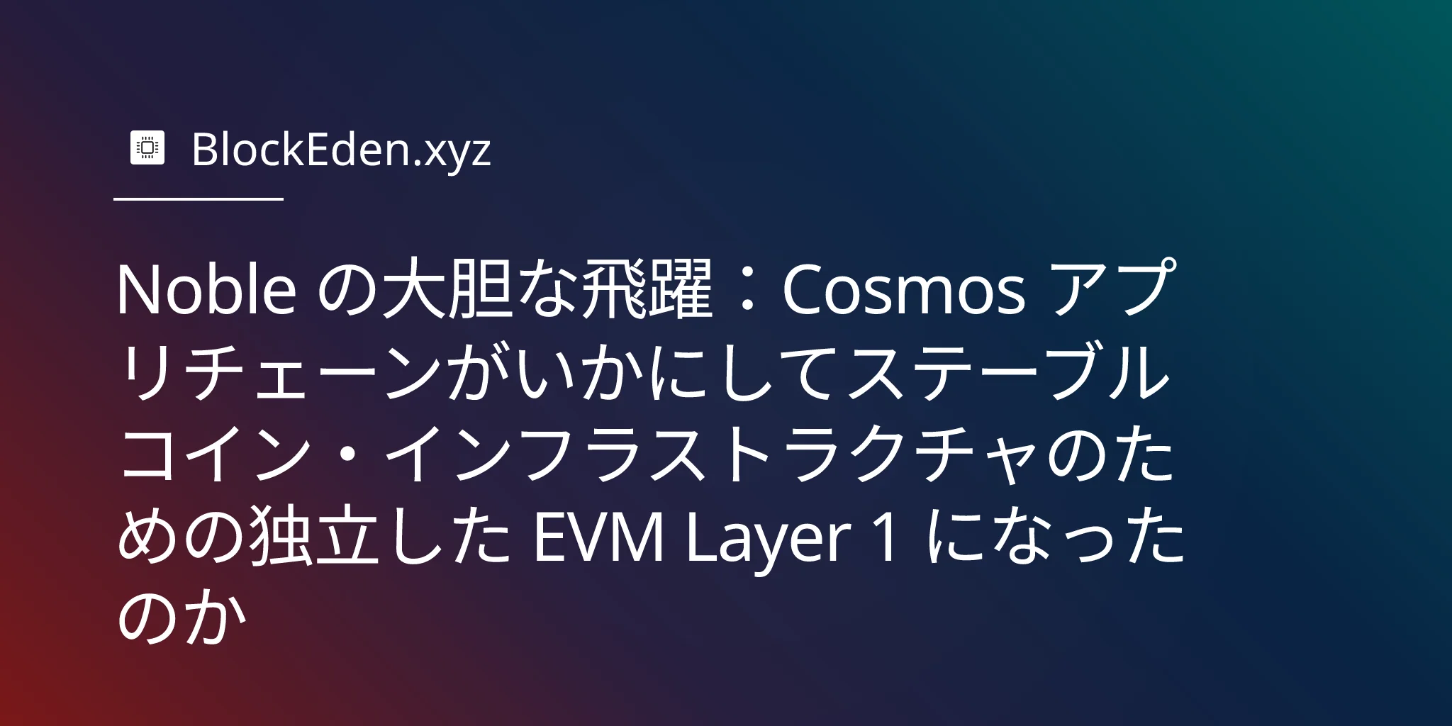 Noble の大胆な飛躍:Cosmos アプリチェーンがいかにしてステーブルコイン・インフラストラクチャのための独立した EVM Layer 1 になったのか
