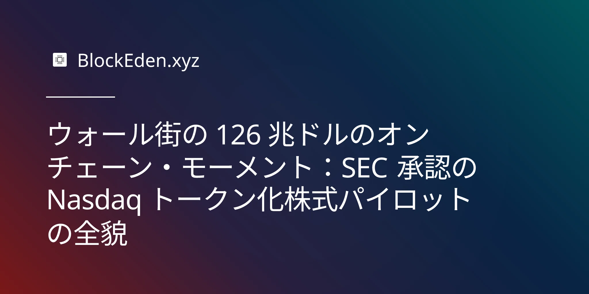 ウォール街の 126 兆ドルのオンチェーン・モーメント:SEC 承認の Nasdaq トークン化株式パイロットの全貌