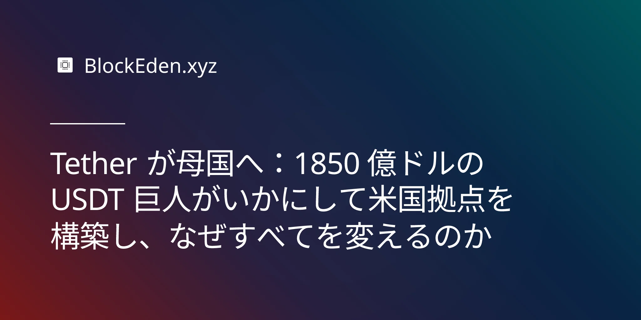 Tether が母国へ:1850 億ドルの USDT 巨人がいかにして米国拠点を構築し、なぜすべてを変えるのか