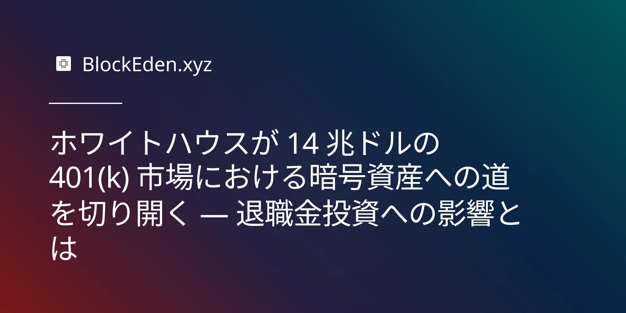 暗号資産セクターにとって、401(k) へのアクセスは ETF 承認とは異なる種類のマイルストーンを意味します。ETF は機関投資家や洗練された投資家をもたらしました。401(k) チャンネルは、アメリカの生活の中で最も信頼されている貯蓄手段を通じて、教師、看護師、工 場管理者といった普通の労働者をデジタル資産のエコシステムに呼び込みます。その信頼が正しいものであるかどうかは、今後数年間にわたって規制当局、プラン・スポンサー、そして暗号資産業界自体がどのようなガードレールを構築するかに完全にかかっています。