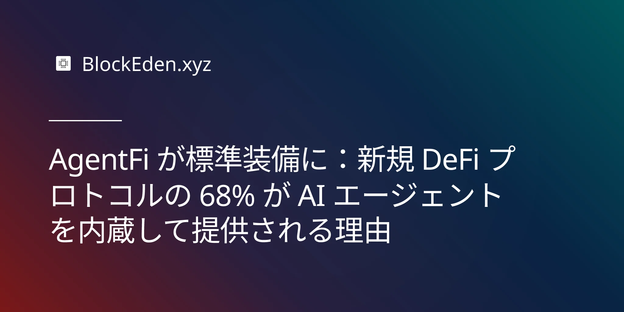 AgentFi が標準装備に:新規 DeFi プロトコルの 68% が AI エージェントを内蔵して提供される理由