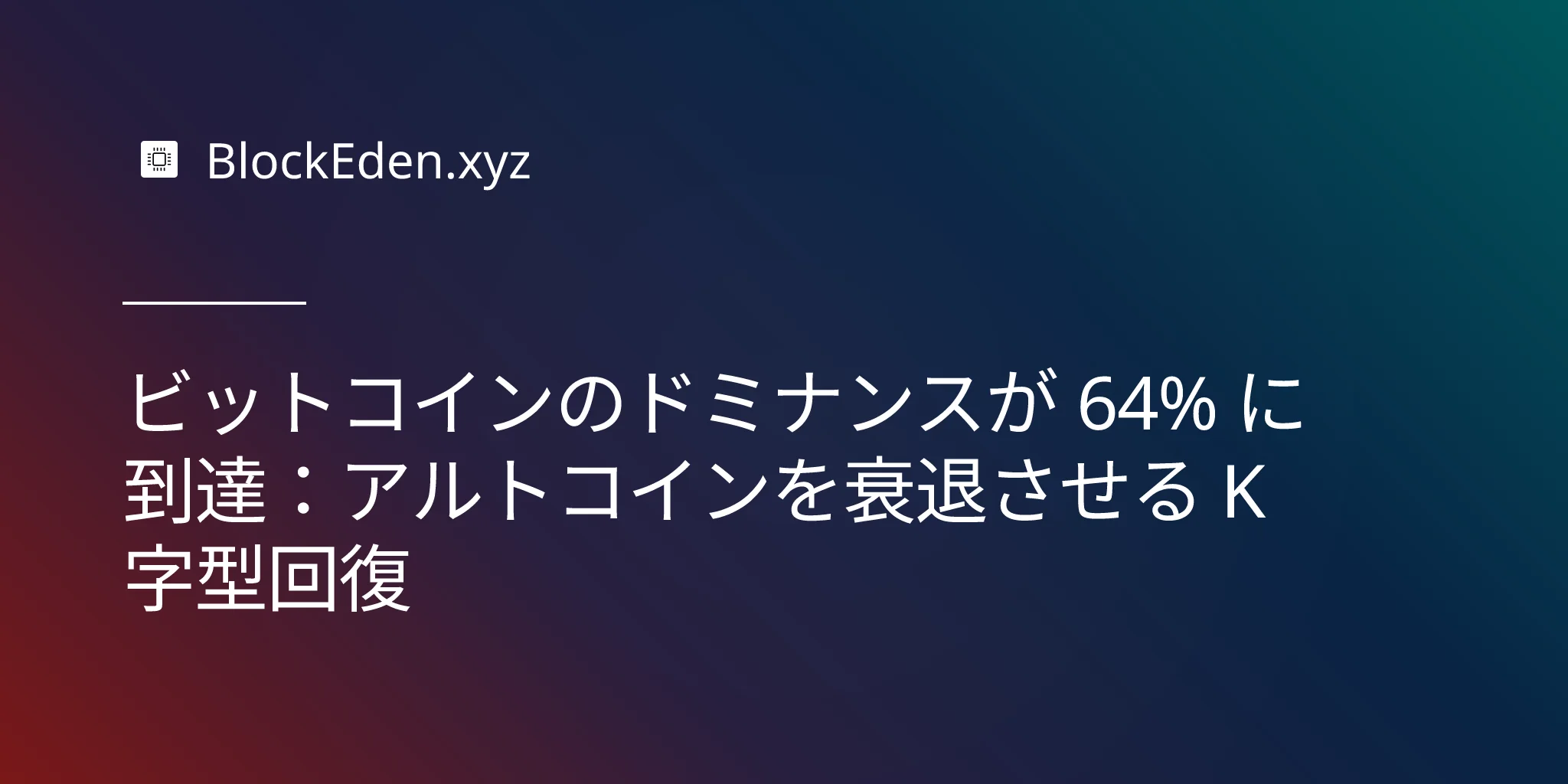 ビットコインのドミナンスが 64% に到達:アルトコインを衰退させる K 字型回復