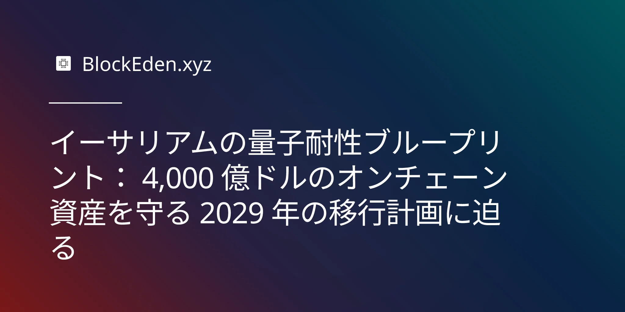 イーサリアムの量子耐性ブループリント: 4,000 億ドルのオンチェーン資産を守る 2029 年の移行計画に迫る