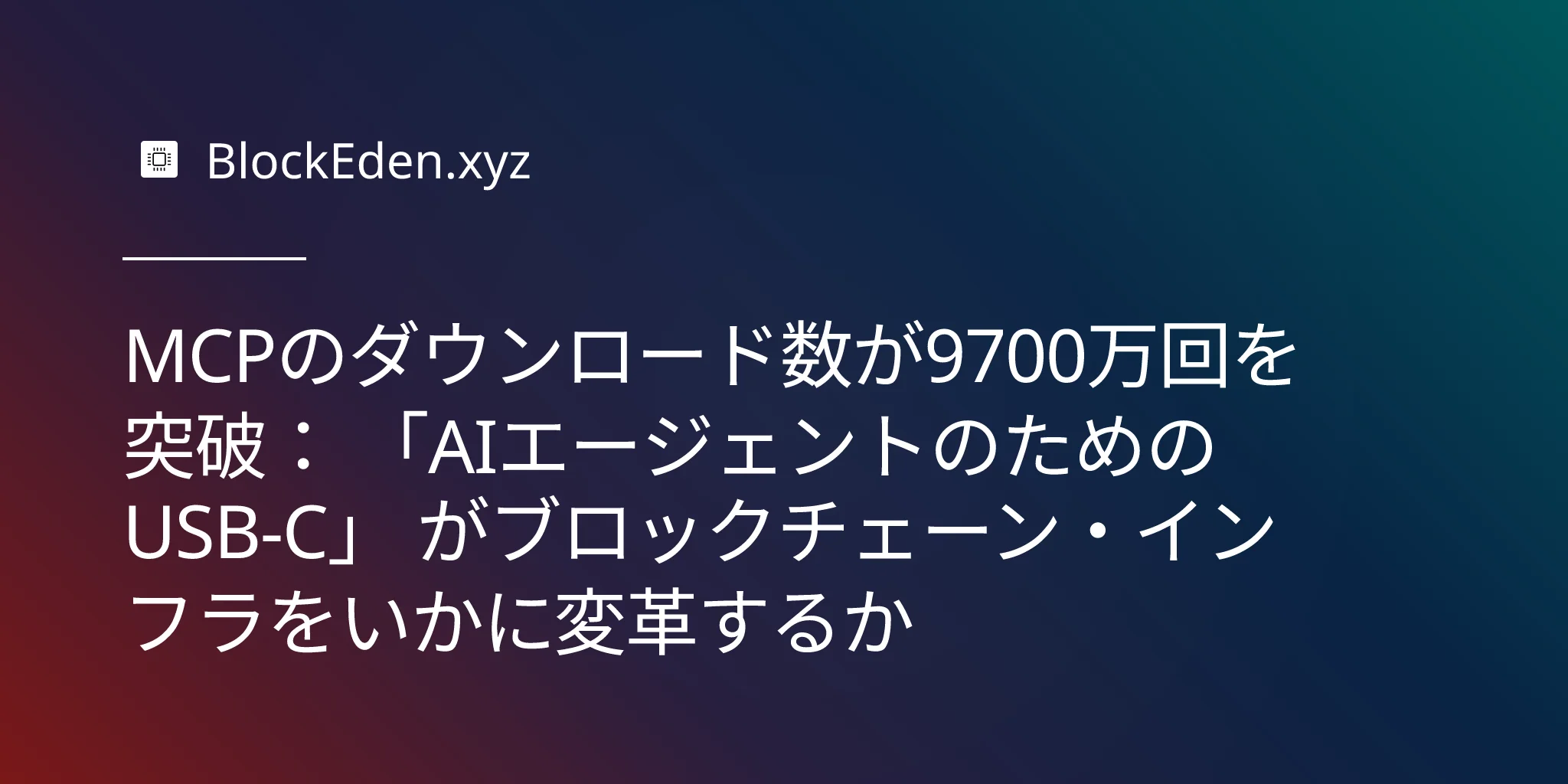 MCPのダウンロード数が9700万回を突破: 「AIエージェントのためのUSB-C」 がブロックチェーン・インフラをいかに変革するか