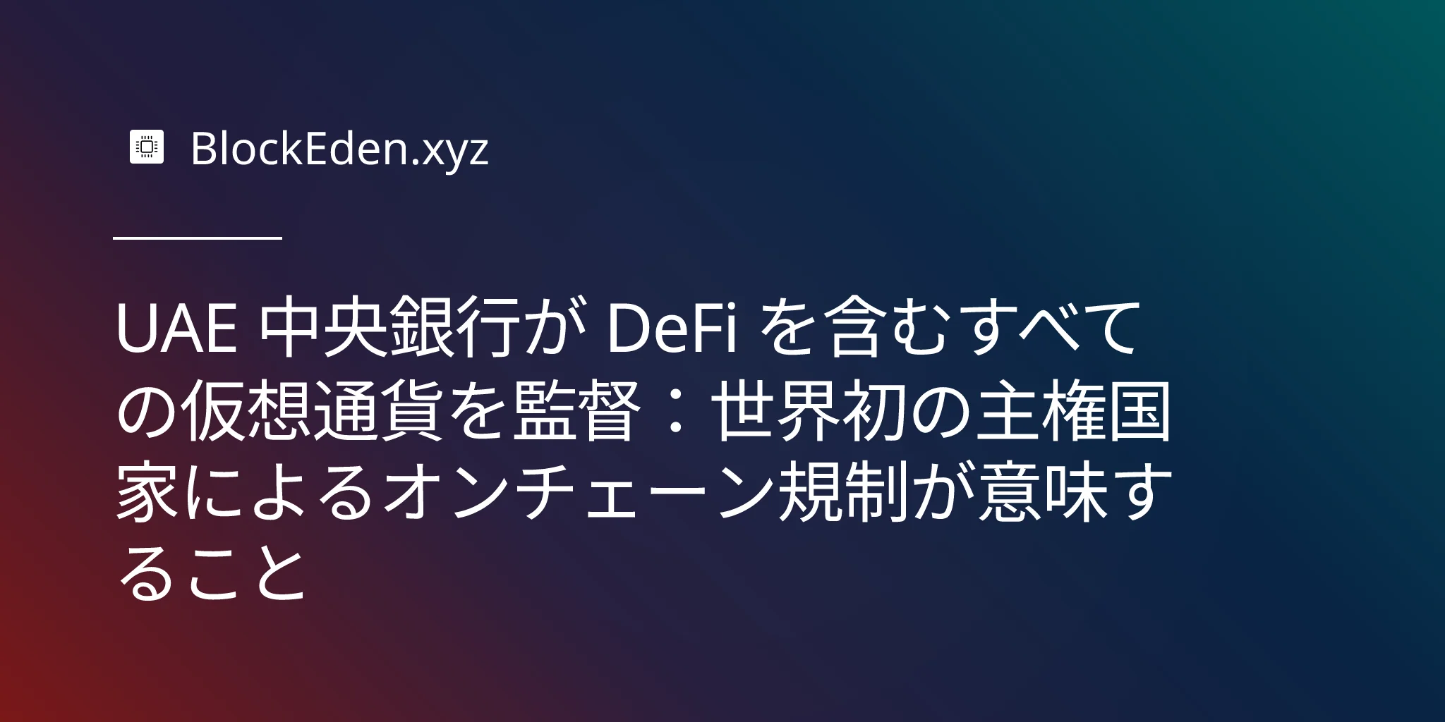 UAE 中央銀行が DeFi を含むすべての仮想通貨を監督:世界初の主権国家によるオンチェーン規制が意味すること