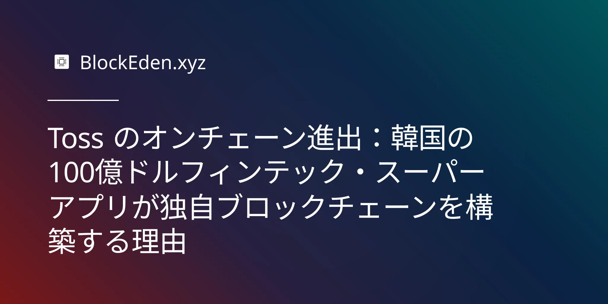 Toss のオンチェーン進出:韓国の100億ドルフィンテック・スーパーアプリが独自ブロックチェーンを構築する理由