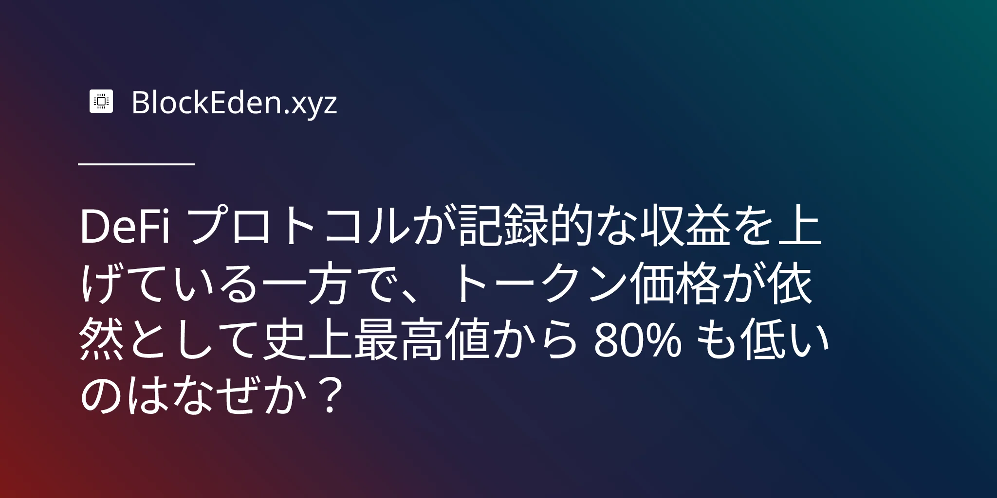 DeFi プロトコルが記録的な収益を上げている一方で、トークン価格が依然として史上最高値から 80% も低いのはなぜか?