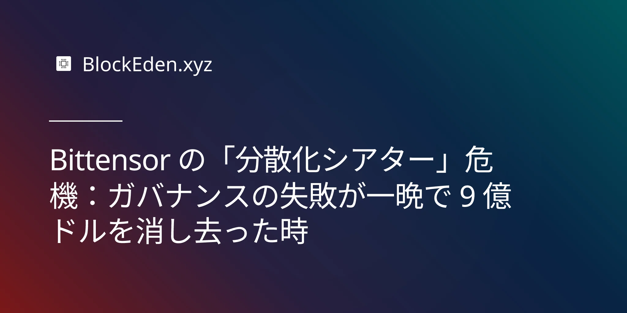 Bittensor の「分散化シアター」危機:ガバナンスの失敗が一晩で 9 億ドルを消し去った時