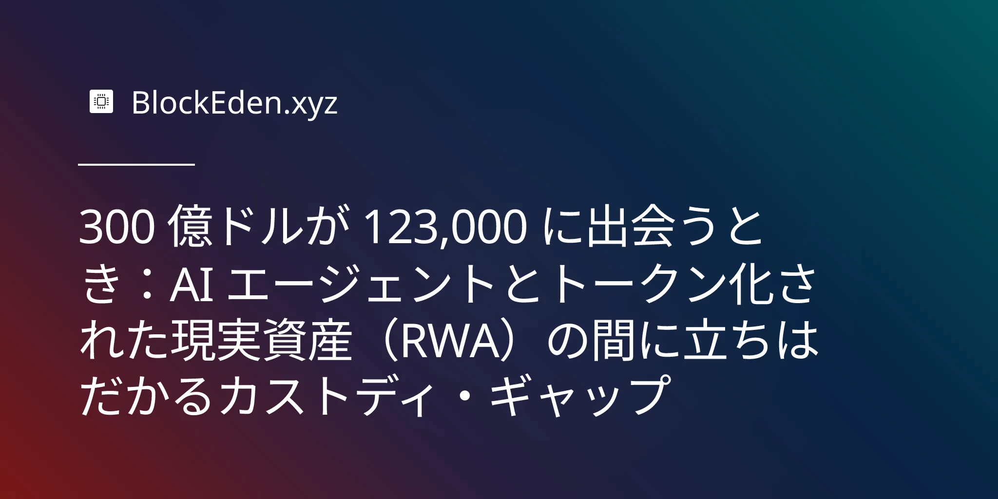 300 億ドルが 123,000 に出会うとき:AI エージェントとトークン化された現実資産(RWA)の間に立ちはだかるカストディ・ギャップ