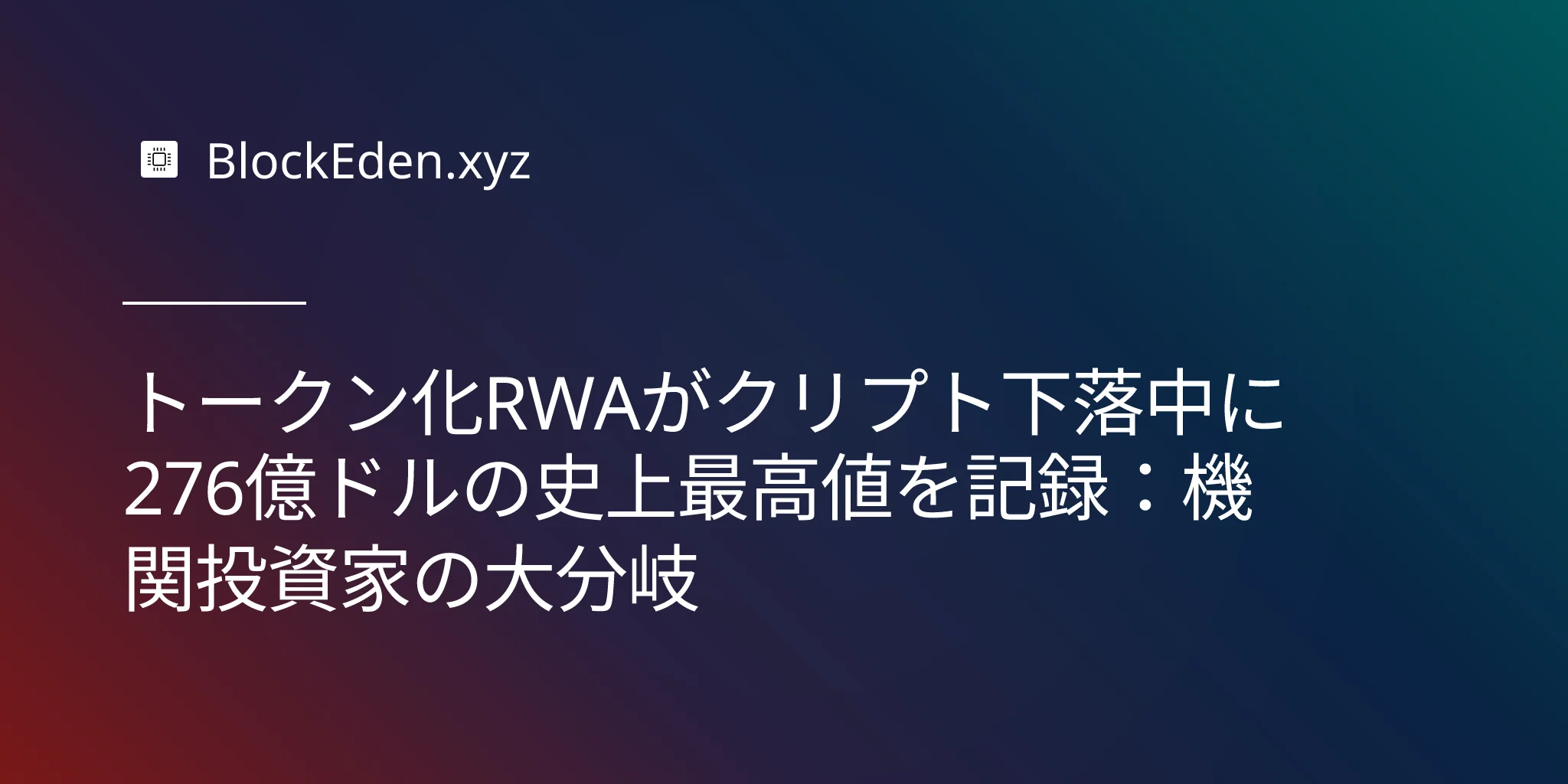 トークン化RWAがクリプト下落中に276億ドルの史上最高値を記録:機関投資家の大分岐