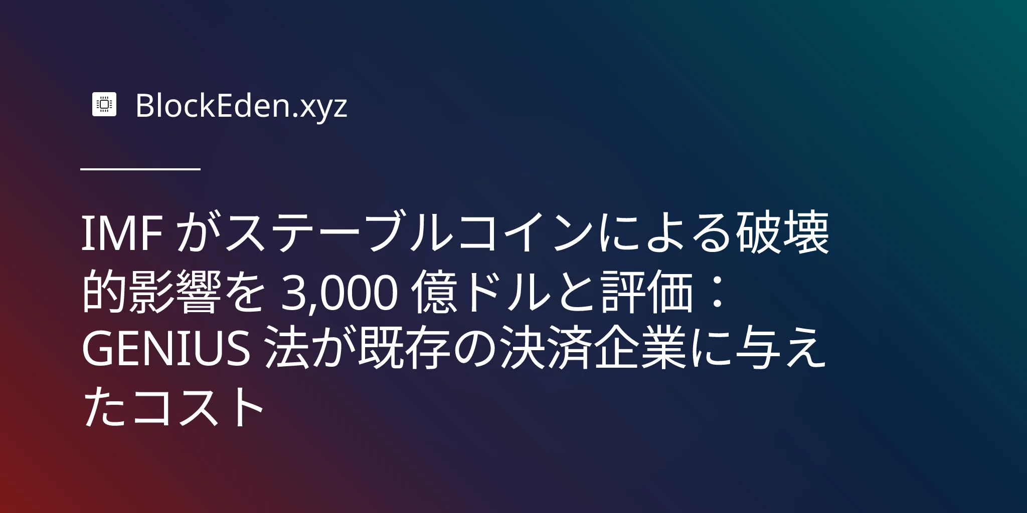 IMF がステーブルコインによる破壊的影響を 3,000 億ドルと評価:GENIUS 法が既存の決済企業に与えたコスト