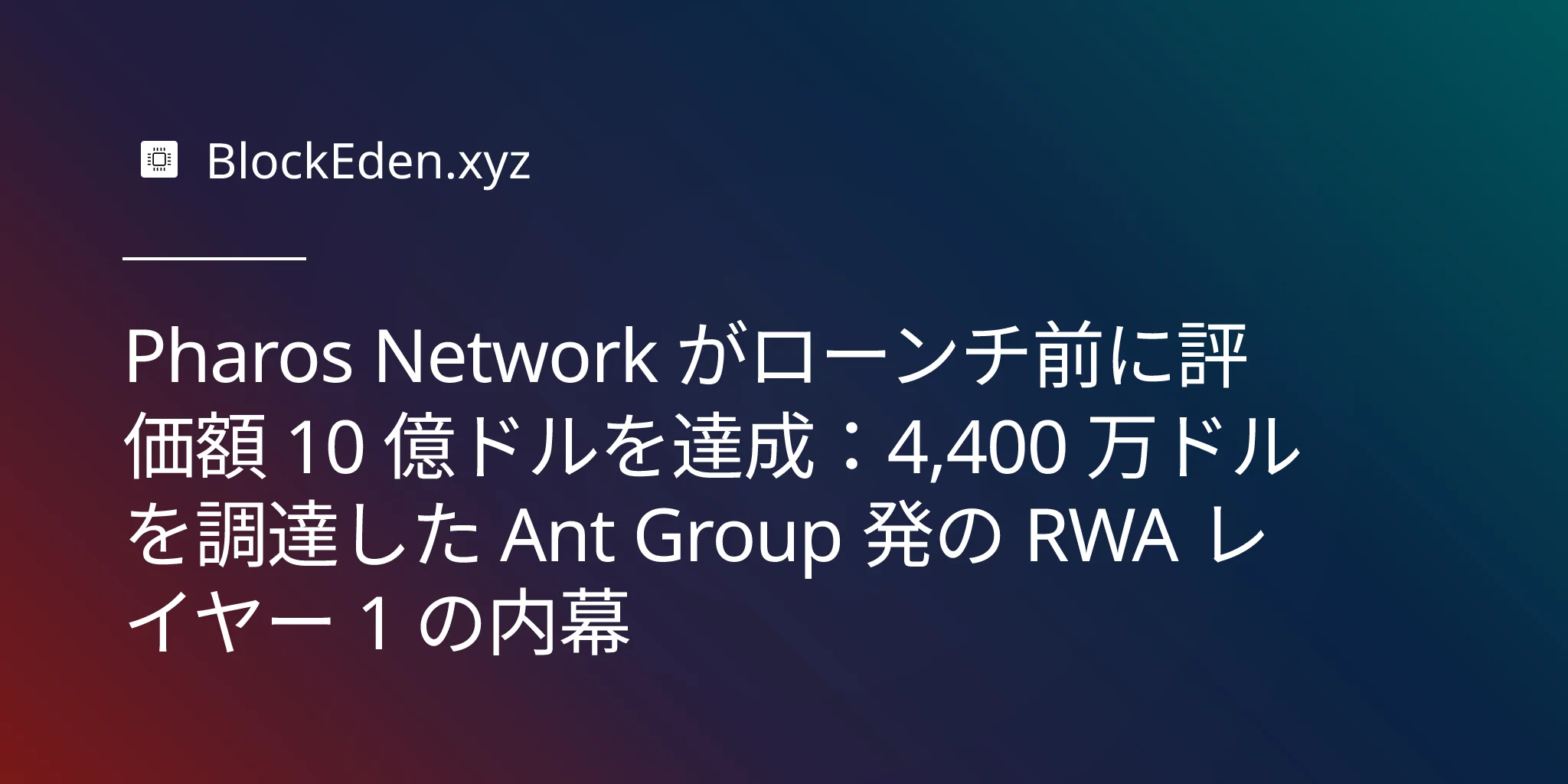 Pharos Network がローンチ前に評価額 10 億ドルを達成:4,400 万ドルを調達した Ant Group 発の RWA レイヤー 1 の内幕