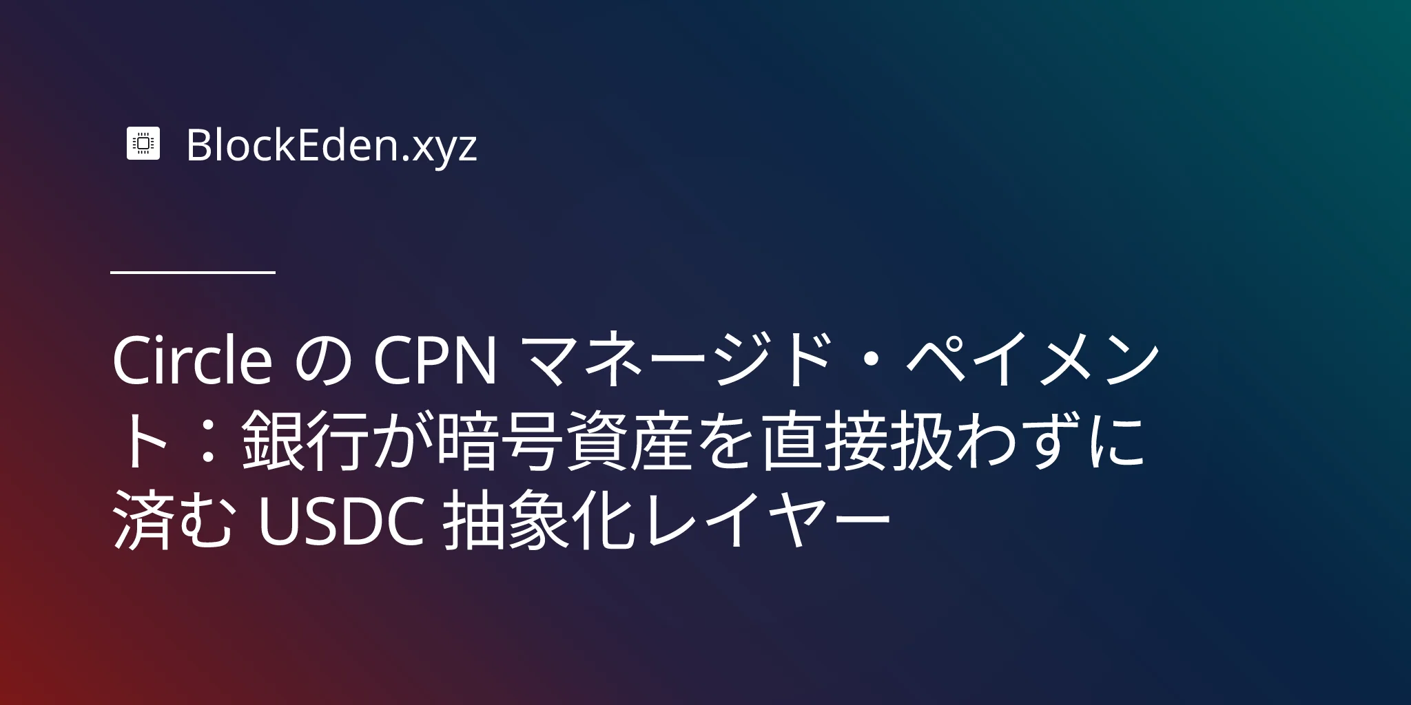 Circle の CPN マネージド・ペイメント:銀行が暗号資産を直接扱わずに済む USDC 抽象化レイヤー