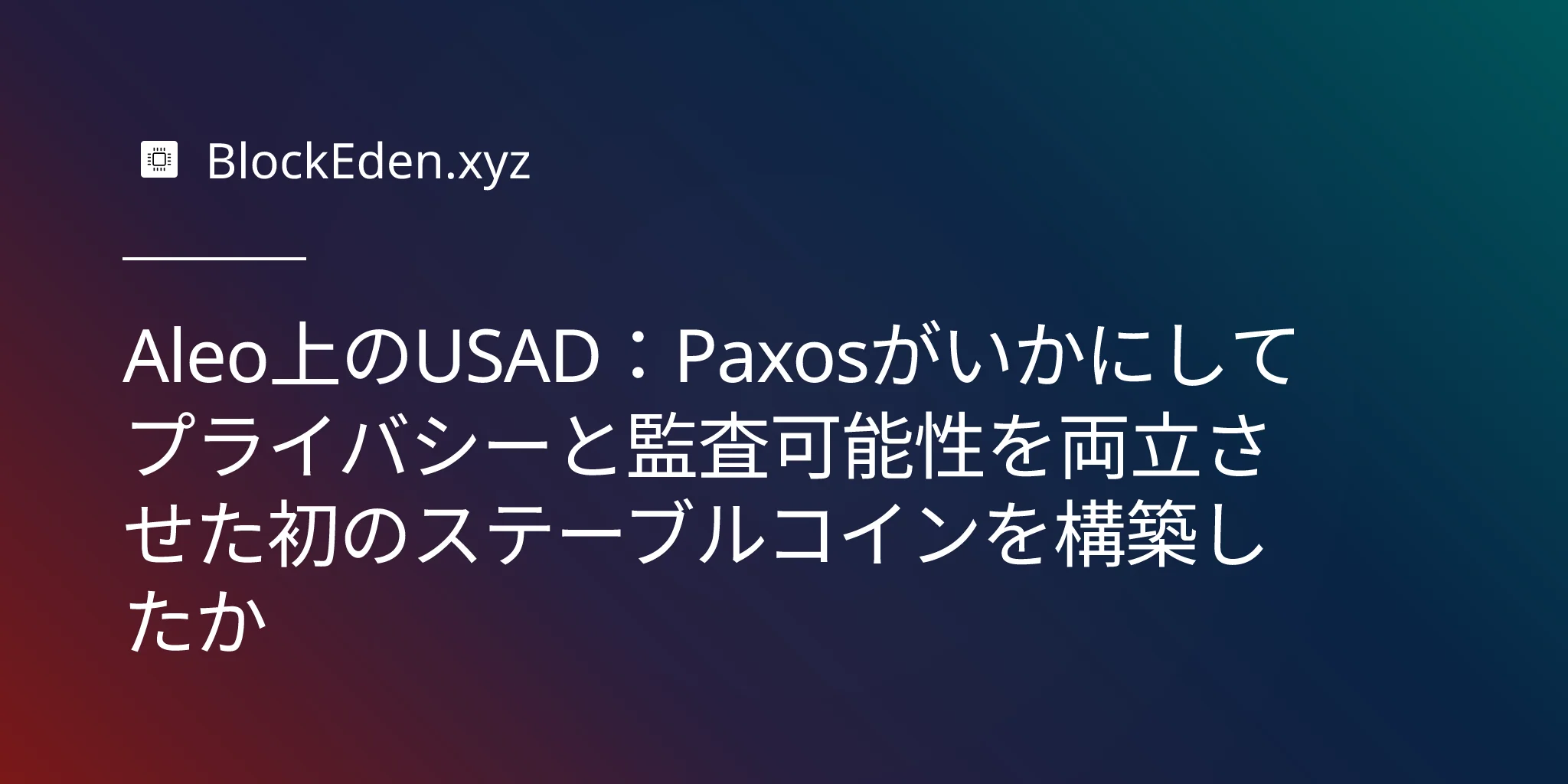 Aleo上のUSAD:Paxosがいかにしてプライバシーと監査可能性を両立させた初のステーブルコインを構築したか