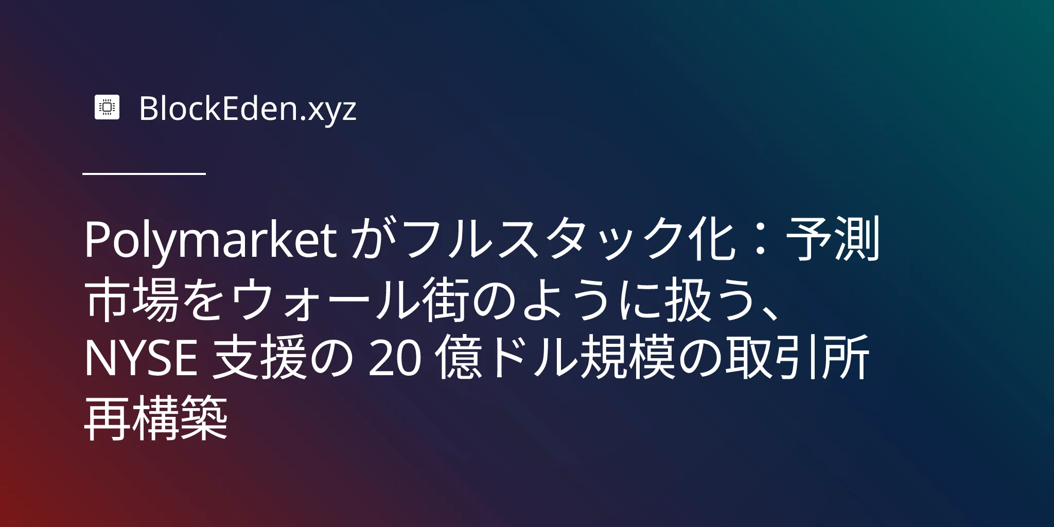 Polymarket がフルスタック化:予測市場をウォール街のように扱う、NYSE 支援の 20 億ドル規模の取引所再構築