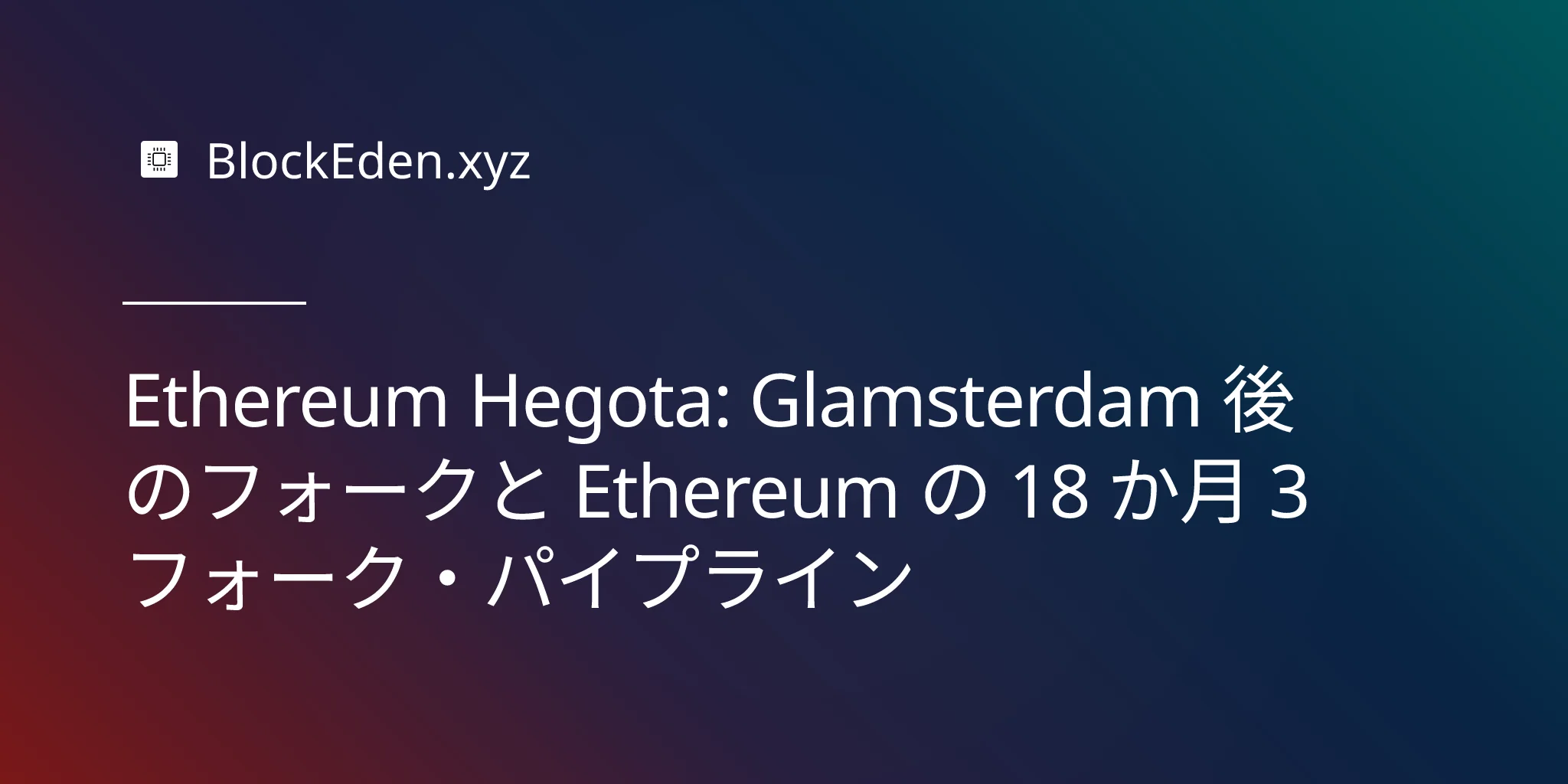 Ethereum Hegota: Glamsterdam 後のフォークと Ethereum の 18 か月 3 フォーク・パイプライン