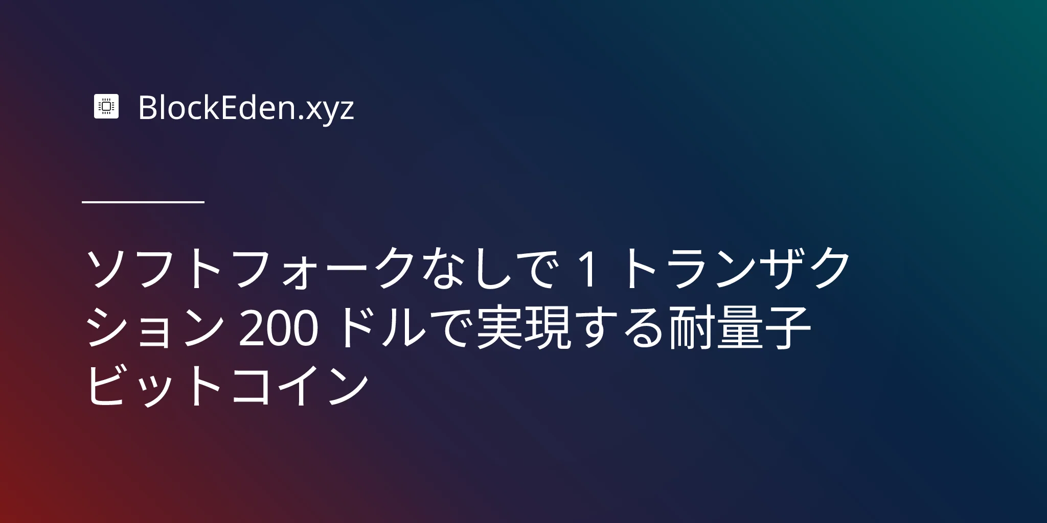 ソフトフォークなしで 1 トランザクション 200 ドルで実現する耐量子ビットコイン