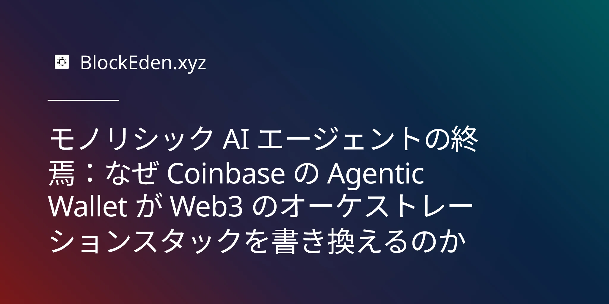 モノリシック AI エージェントの終焉:なぜ Coinbase の Agentic Wallet が Web3 のオーケストレーションスタックを書き換えるのか