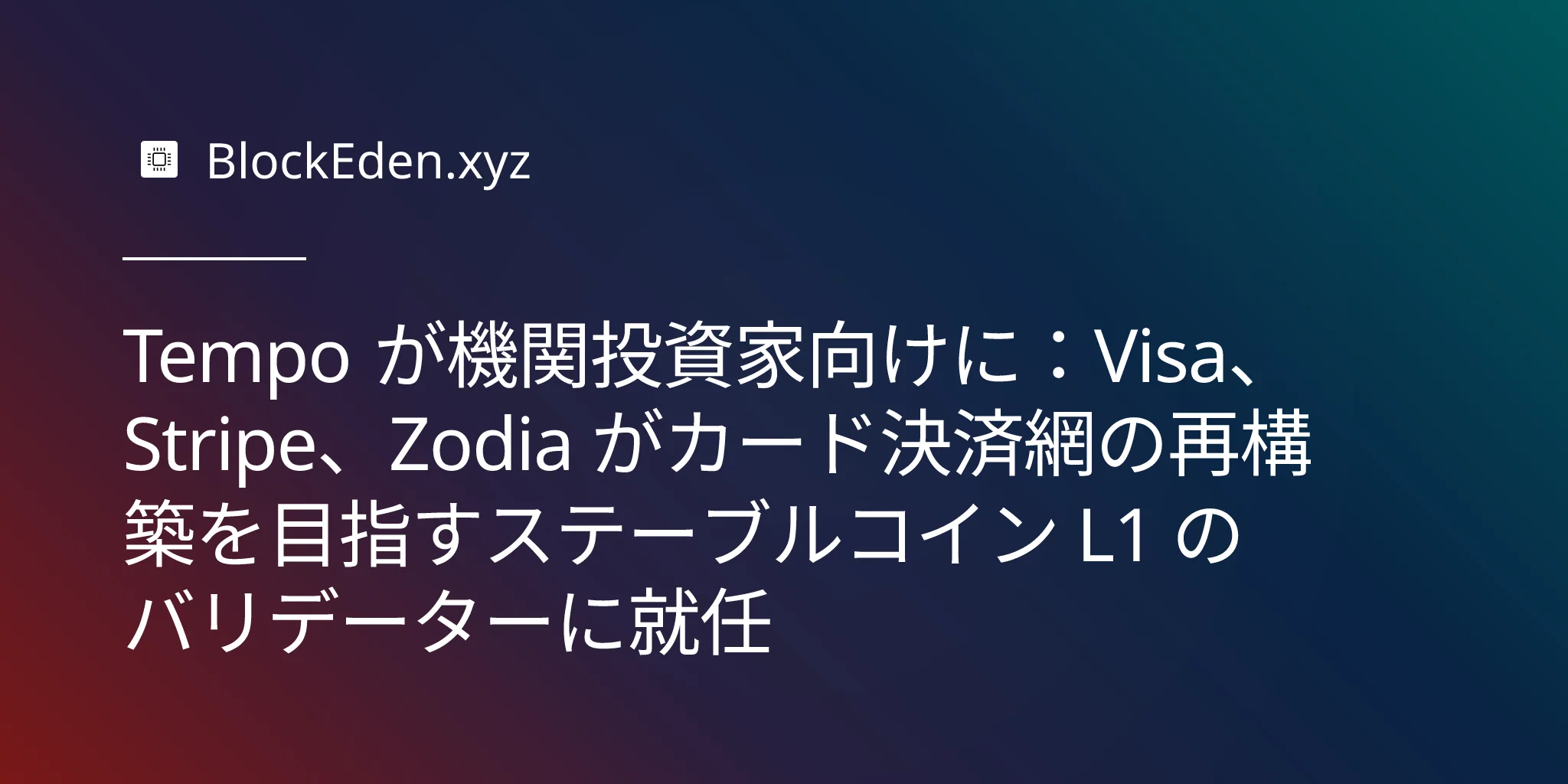 Tempo が機関投資家向けに:Visa、Stripe、Zodia がカード決済網の再構築を目指すステーブルコイン L1 のバリデーターに就任