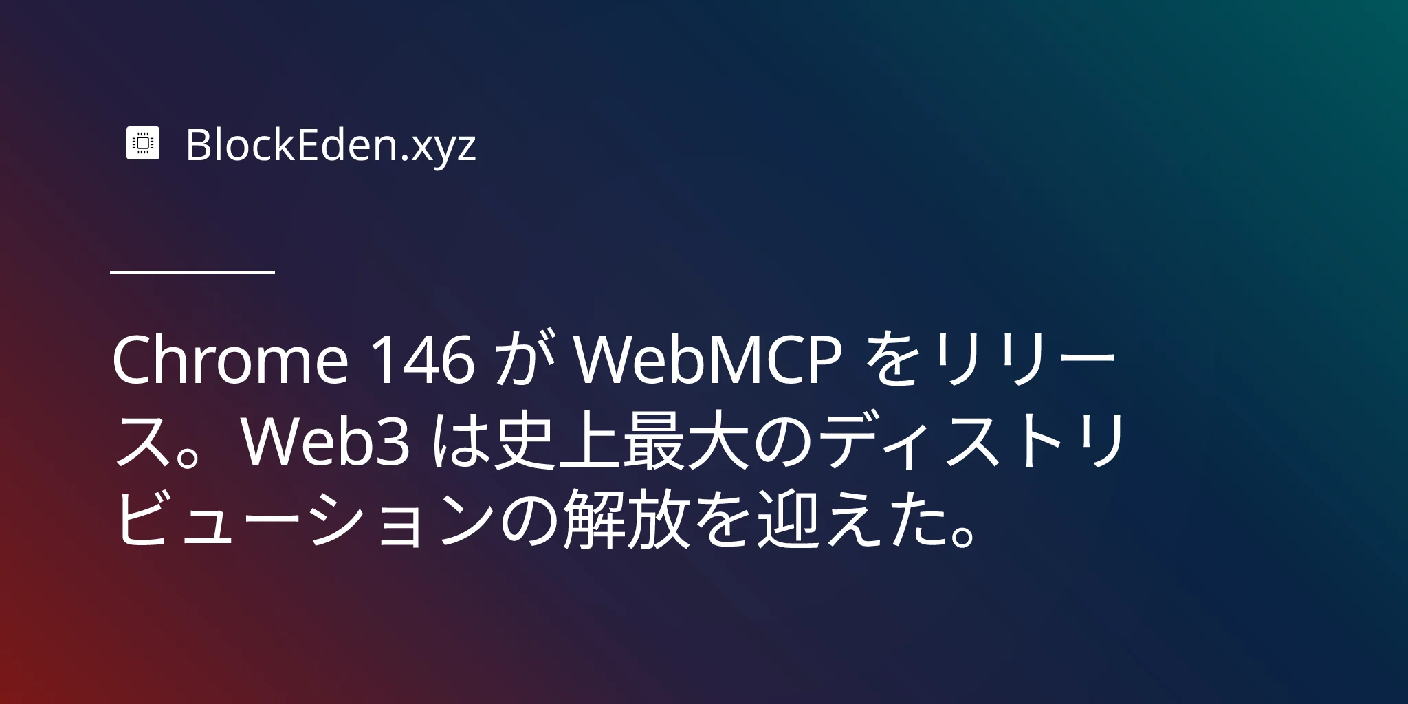 Chrome 146 が WebMCP をリリース。Web3 は史上最大のディストリビューションの解放を迎えた。