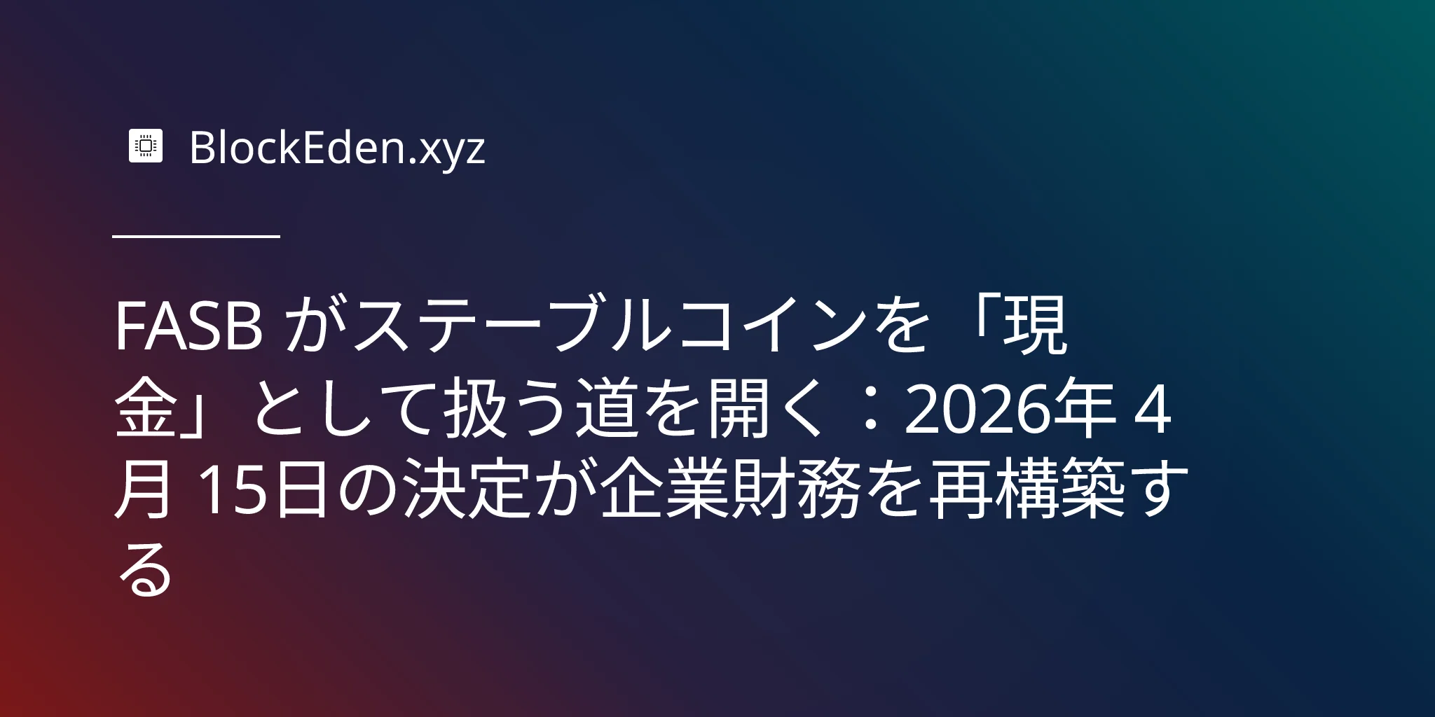FASB がステーブルコインを「現金」として扱う道を開く:2026年 4月 15日の決定が企業財務を再構築する