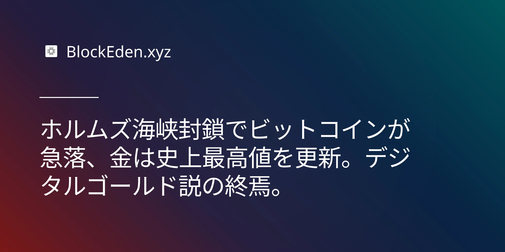 ホルムズ海峡封鎖でビットコインが急落、金は史上最高値を更新。デジタルゴールド説の終焉。
