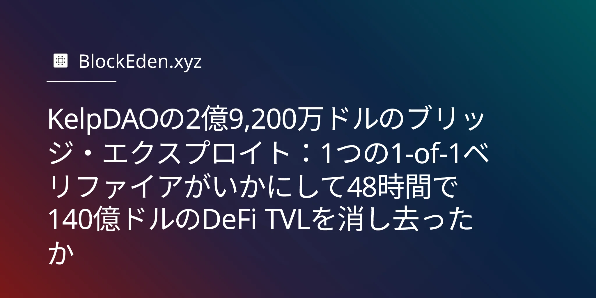 KelpDAOの2億9,200万ドルのブリッジ・エクスプロイト:1つの1-of-1ベリファイアがいかにして48時間で140億ドルのDeFi TVLを消し去ったか