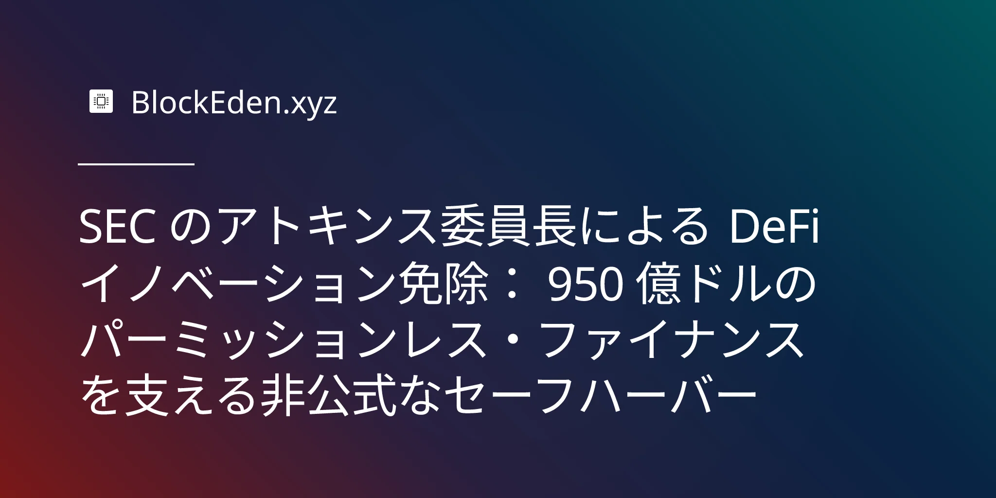 SEC のアトキンス委員長による DeFi イノベーション免除: 950 億ドルのパーミッションレス・ファイナンスを支える非公式なセーフハーバー
