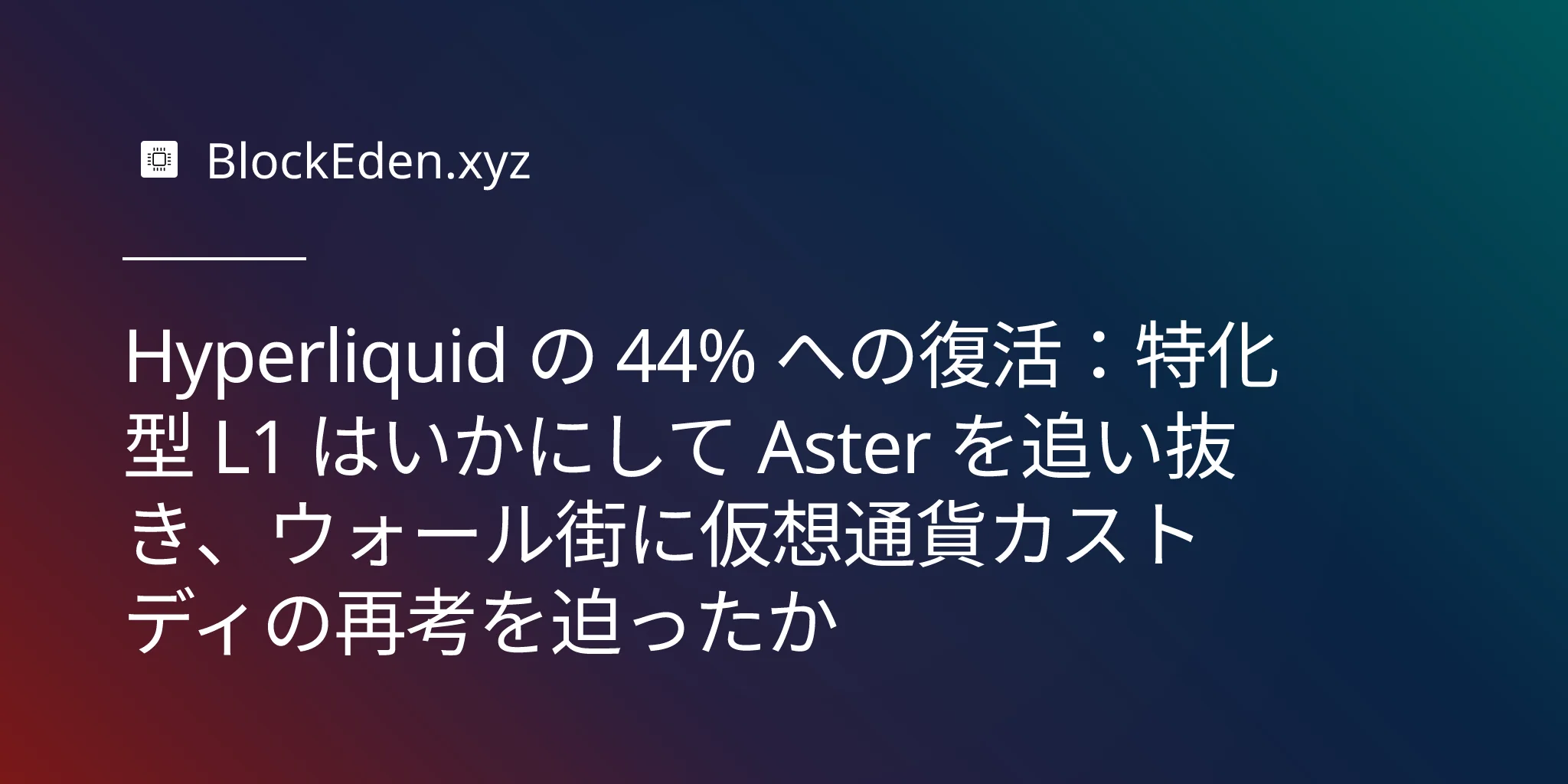 Hyperliquid の 44% への復活:特化型 L1 はいかにして Aster を追い抜き、ウォール街に仮想通貨カストディの再考を迫ったか