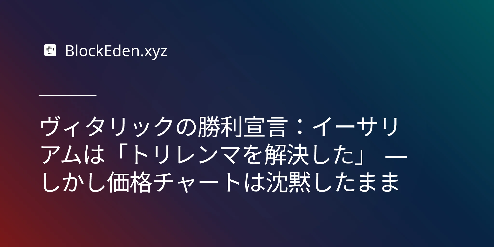 ヴィタリックの勝利宣言:イーサリアムは「トリレンマを解決した」 — しかし価格チャートは沈黙したまま