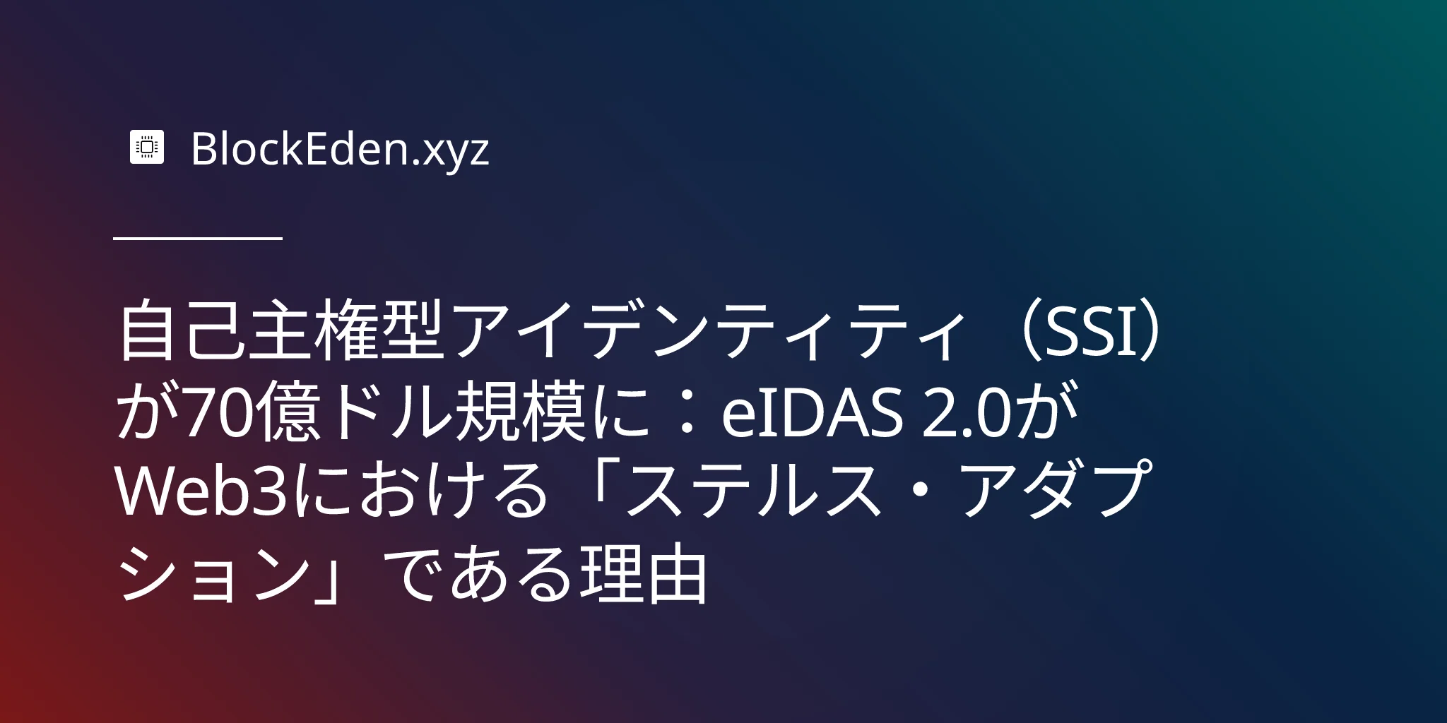 自己主権型アイデンティティ(SSI)が70億ドル規模に:eIDAS 2.0がWeb3における「ステルス・アダプション」である理由