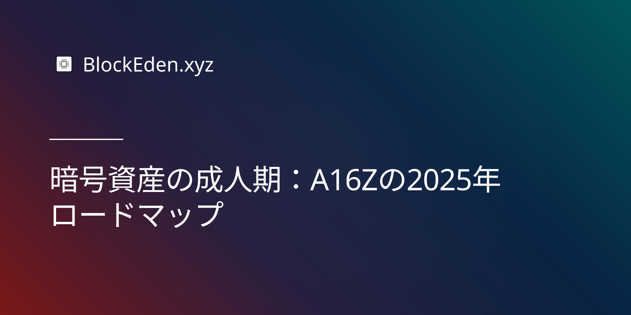 暗号資産の成人期:A16Zの2025年ロードマップ