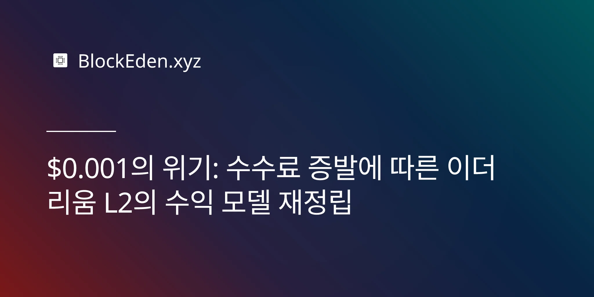 $0.001의 위기: 수수료 증발에 따른 이더리움 L2의 수익 모델 재정립
