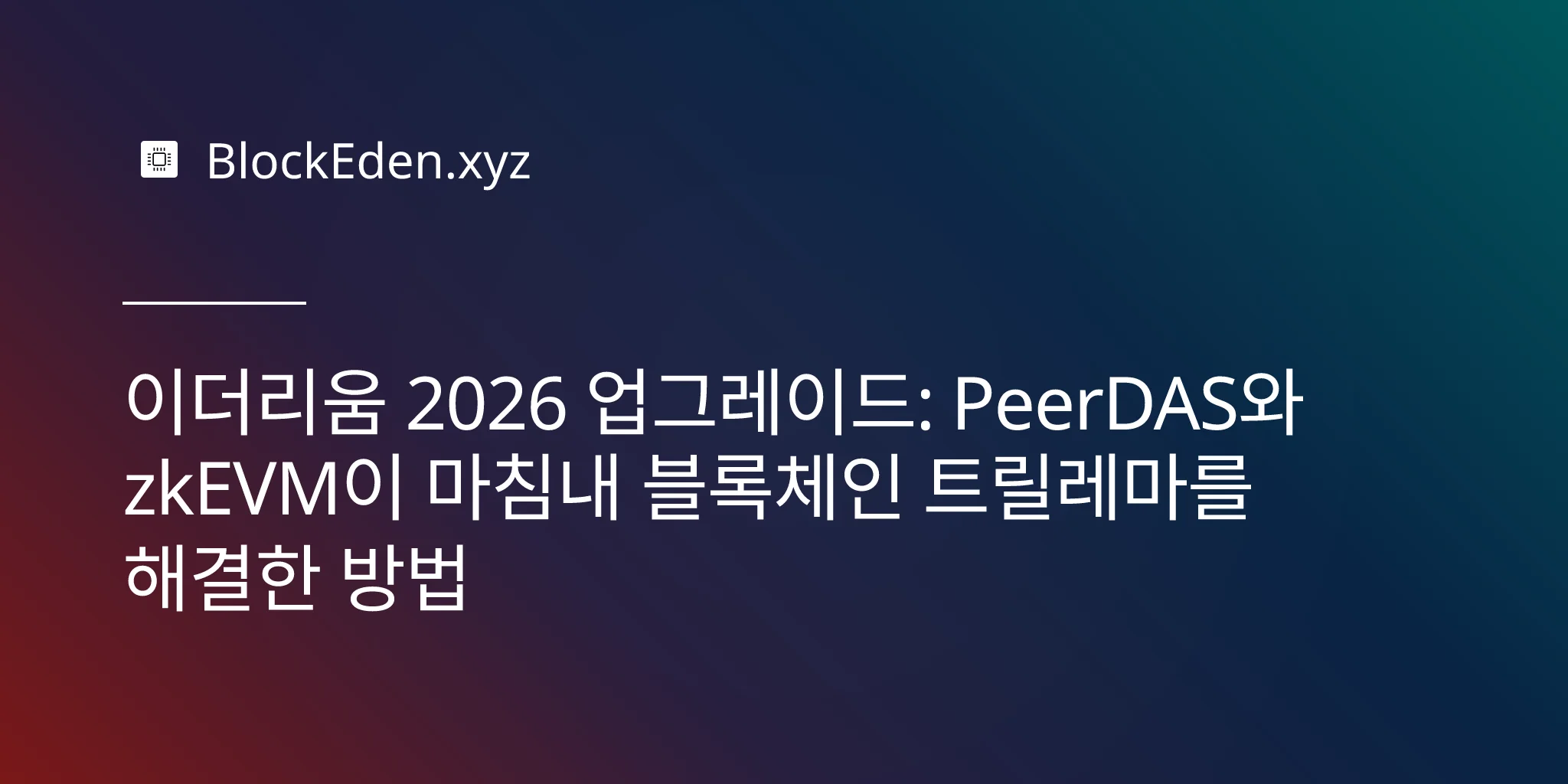 이더리움 2026 업그레이드: PeerDAS와 zkEVM이 블록체인 트릴레마를 마침내 해결한 방법