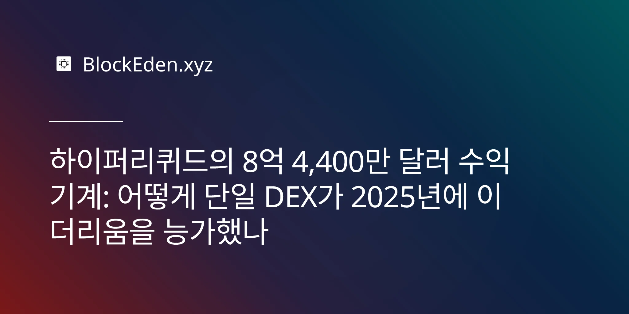 2025년, 암호화폐 시장에서 전례 없는 일이 일어났습니다. 단일 탈중앙화 거래소(DEX)가 이더리움 블록체인 전체보다 더 많은 수익을 창출한 것입니다. 무기한 선물 거래를 위해 특화된 레이어 1인 하이퍼리퀴드(Hyperliquid)는 연간 수익 8억 4,400만 달러, 거래량 2조 9,500억 달러, 탈중앙화 파생상품 시장 점유율 80% 이상을 기록하며 한 해를 마감했습니다.