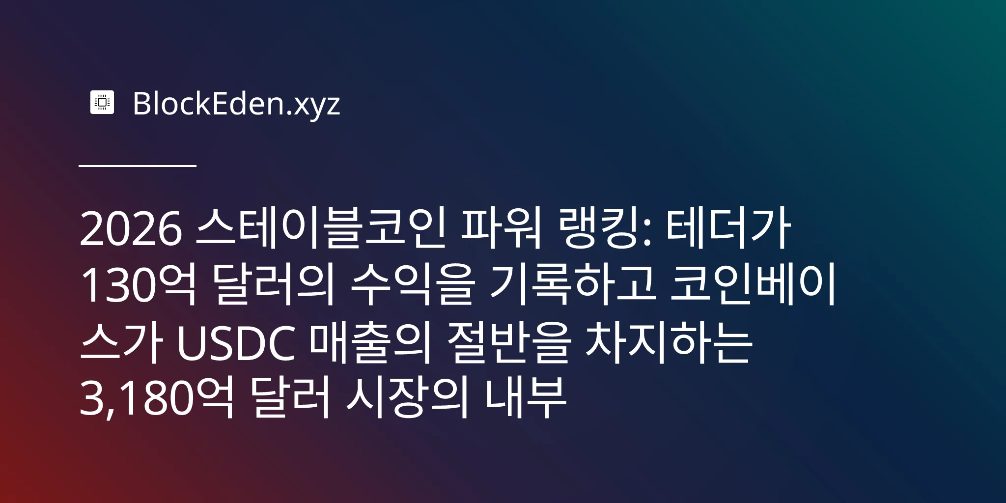 2026 스테이블코인 파워 랭킹: 테더가 130억 달러의 수익을 기록하고 코인베이스가 USDC 매출의 절반을 차지하는 3,180억 달러 시장의 내부