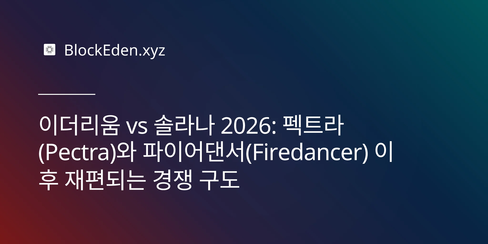 이더리움 vs 솔라나 2026: 펙트라(Pectra)와 파이어댄서(Firedancer) 이후 재편되는 경쟁 구도