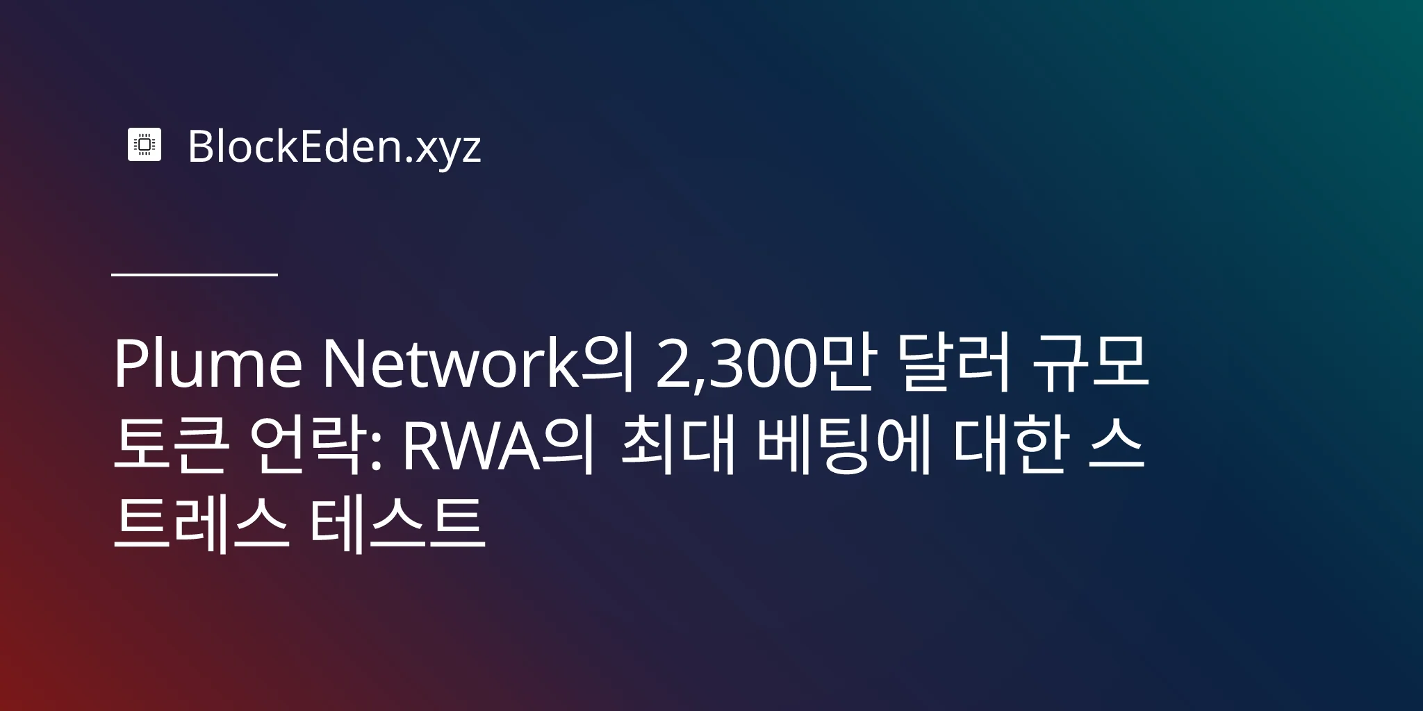 Plume Network의 2,300만 달러 규모 토큰 언락: RWA의 최대 베팅에 대한 스트레스 테스트