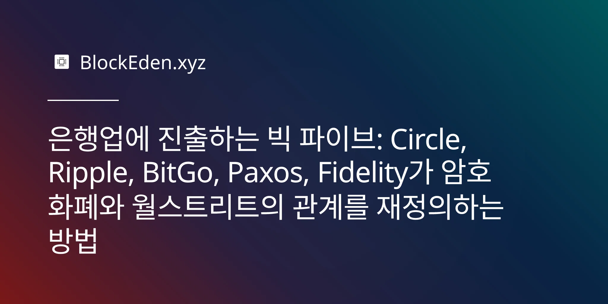 은행업에 진출하는 빅 파이브: Circle, Ripple, BitGo, Paxos, Fidelity가 암호화폐와 월스트리트의 관계를 재정의하는 방법