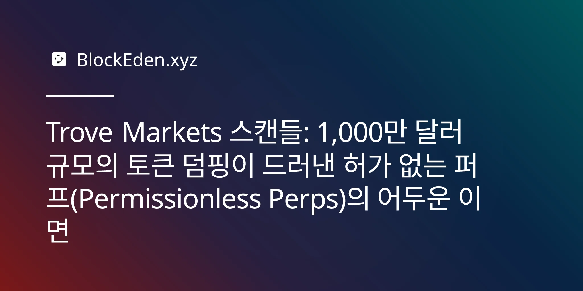 Trove Markets 스캔들: 1,000만 달러 규모의 토큰 덤핑이 드러낸 허가 없는 퍼프(Permissionless Perps)의 어두운 이면