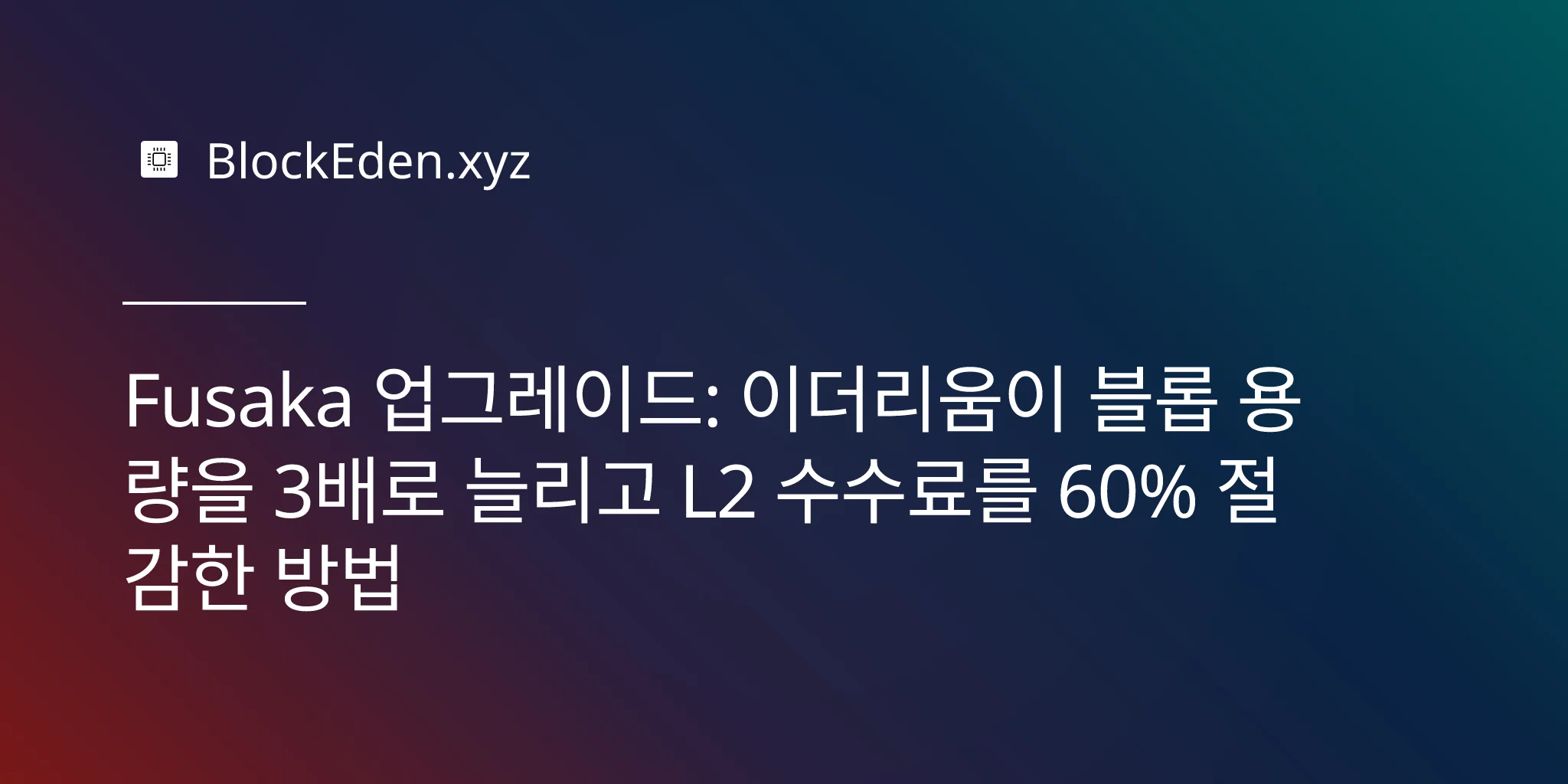 Fusaka 업그레이드: 이더리움이 블롭 용량을 3배로 늘리고 L2 수수료를 60% 절감한 방법
