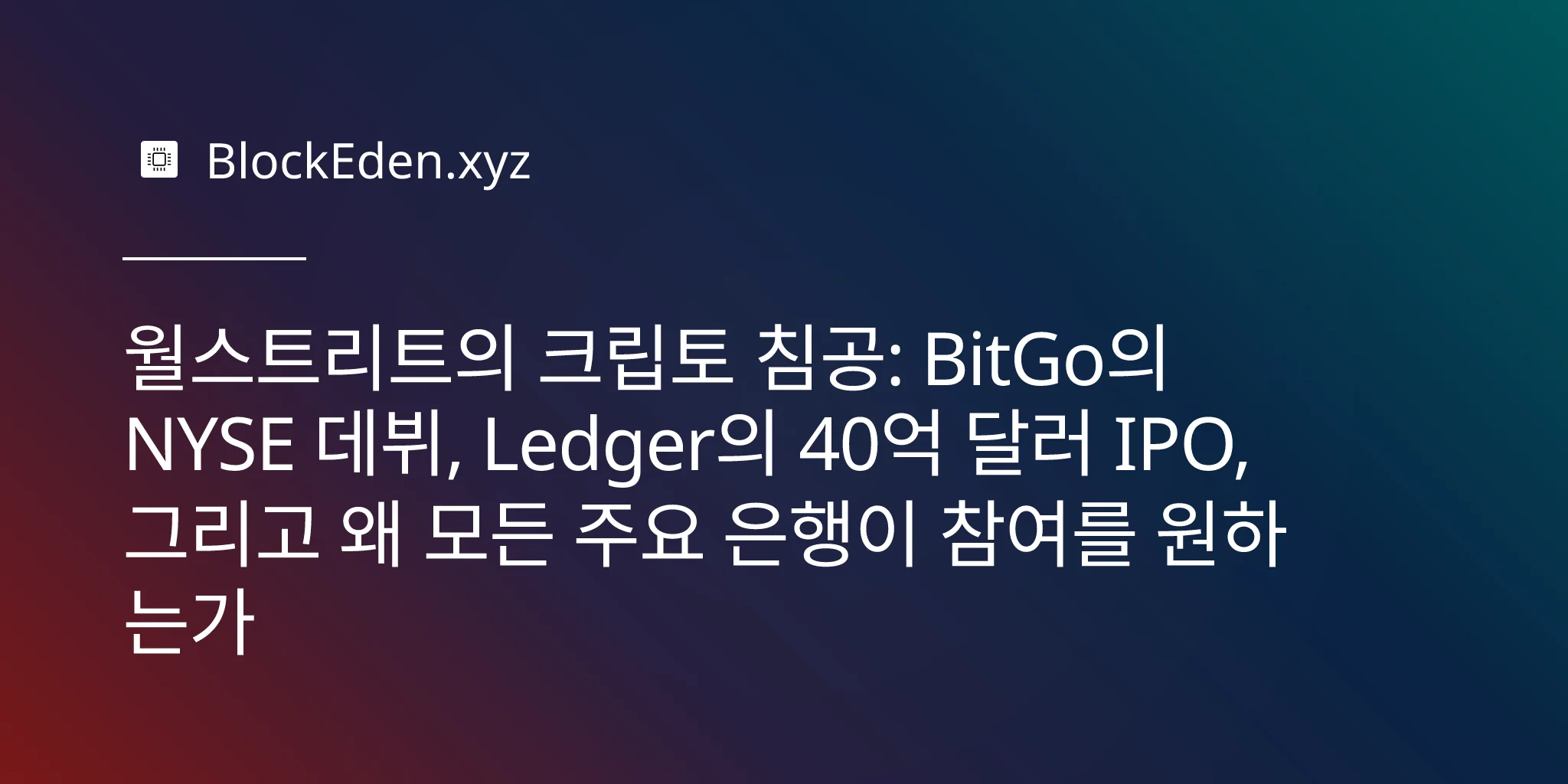월스트리트의 크립토 침공: BitGo의 NYSE 데뷔, Ledger의 40억 달러 IPO, 그리고 왜 모든 주요 은행이 참여를 원하는가