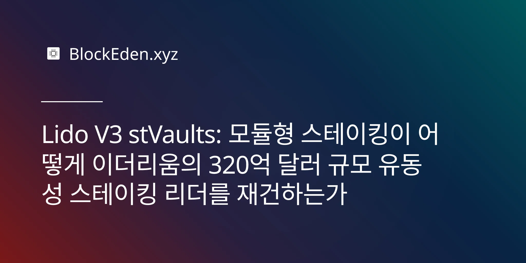 Lido V3가 시장 점유율 하락세를 성공적으로 반전시킬 수 있을지는 실행력에 달려 있습니다. 기술은 견고합니다. 공유 유동성을 가진 모듈러 vault는 현재 존재하는 다양한 스테이킹 활용 사례에 있어 진정으로 더 나은 아키텍처입니다. 파트너 생태계가 형성되고 있으며, 규제의 창도 열리고 있습니다.