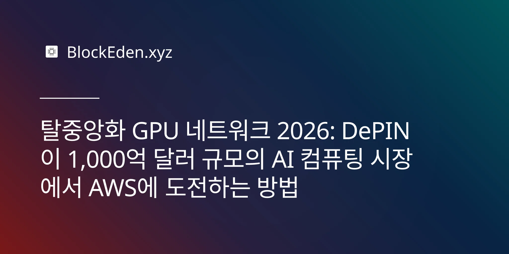 탈중앙화 GPU 네트워크 2026: DePIN이 1,000억 달러 규모의 AI 컴퓨팅 시장에서 AWS에 도전하는 방법