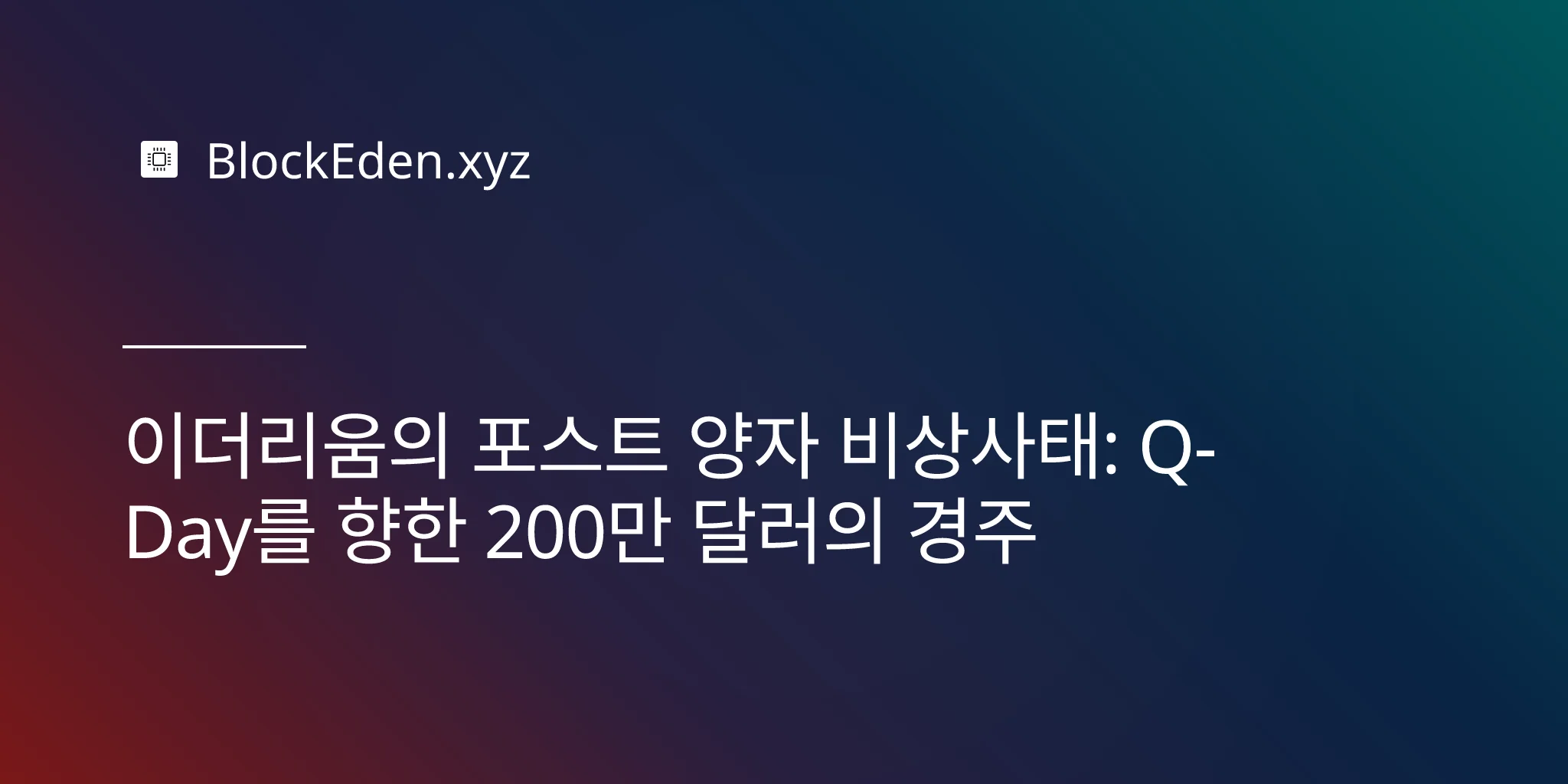 이더리움의 포스트 양자 비상사태: Q-Day를 향한 200만 달러의 경주