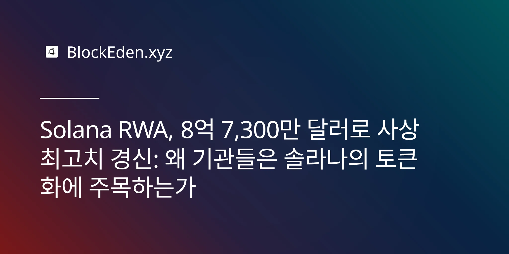 Solana RWA, 8억 7,300만 달러로 사상 최고치 경신: 왜 기관들은 솔라나의 토큰화에 주목하는가