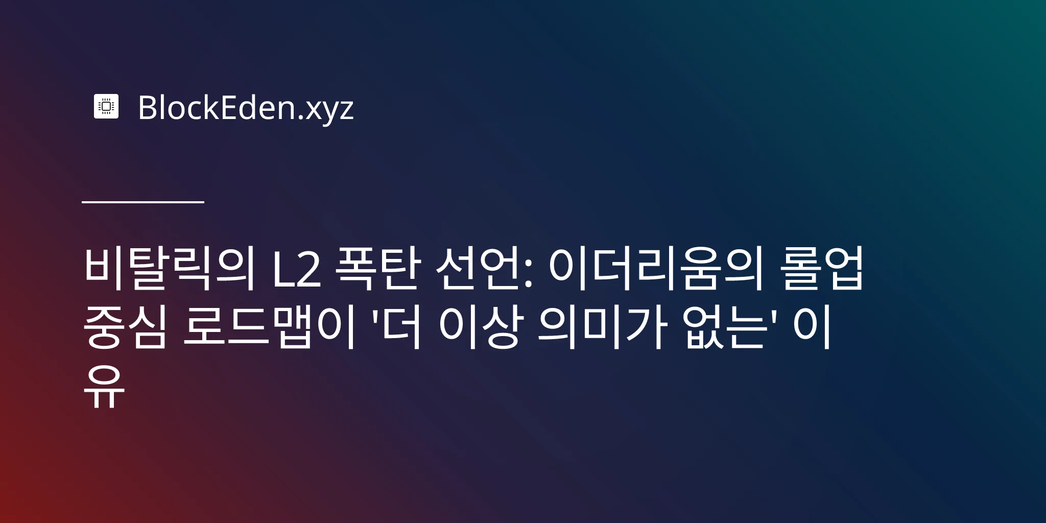 비탈릭의 L2 폭탄 선언: 이더리움의 롤업 중심 로드맵이 '더 이상 의미가 없는' 이유