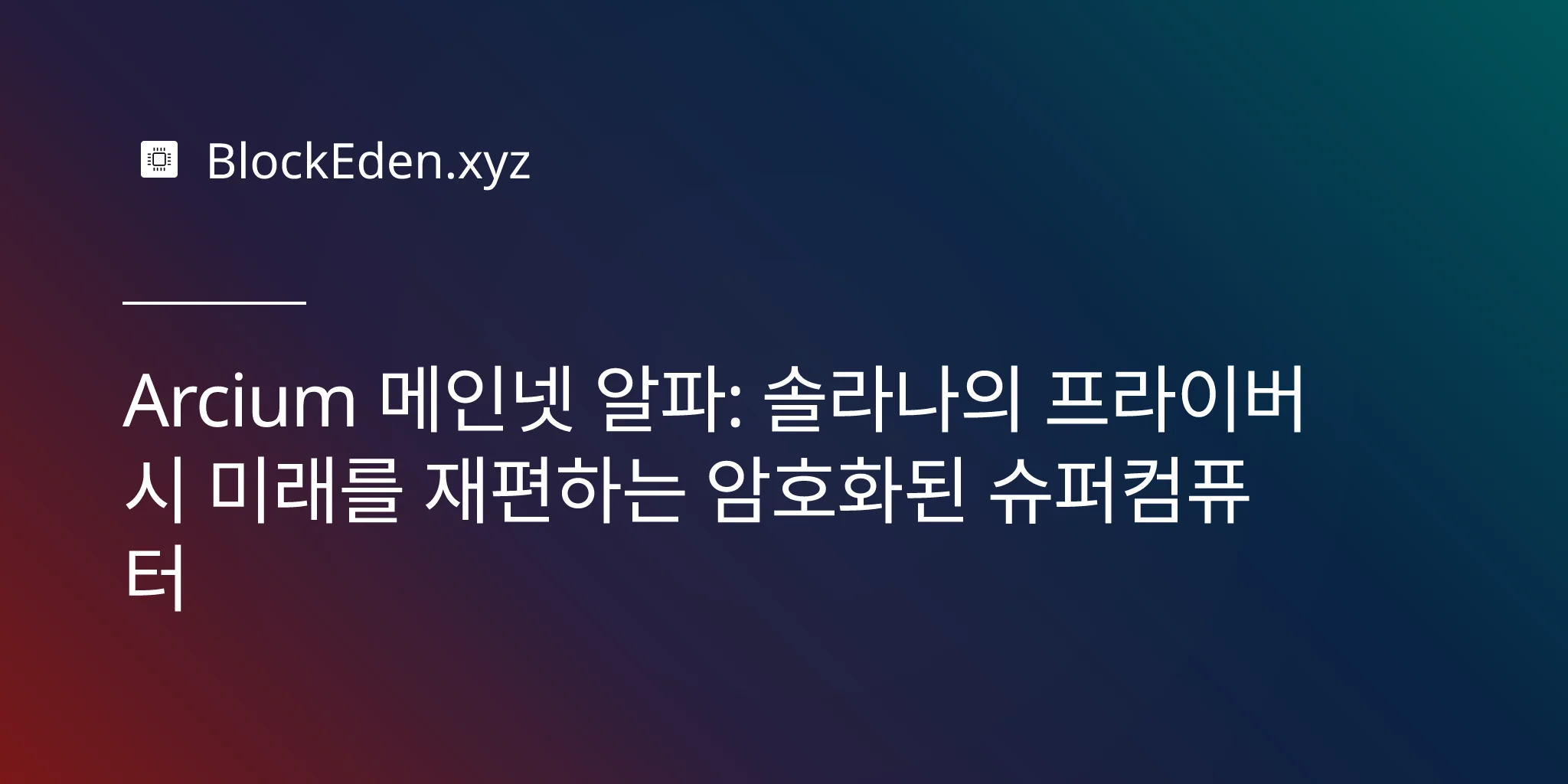 Arcium이 메인넷 알파를 출시하며 네트워크를 테스트넷 실험 단계에서 "암호화된 자본 시장"을 지원하는 라이브 인프라로 전환했습니다. 8개 분야에 걸친 25개 이상의 프로젝트가 이미 이 플랫폼에서 빌딩 중이며, Web2 기밀 컴퓨팅의 선두주자인 Inpher를 전략적으로 인수함으로써 Arcium은 기관급 DeFi가 기다려온 프라이버시 레이어로 자리매김하고 있습니다.